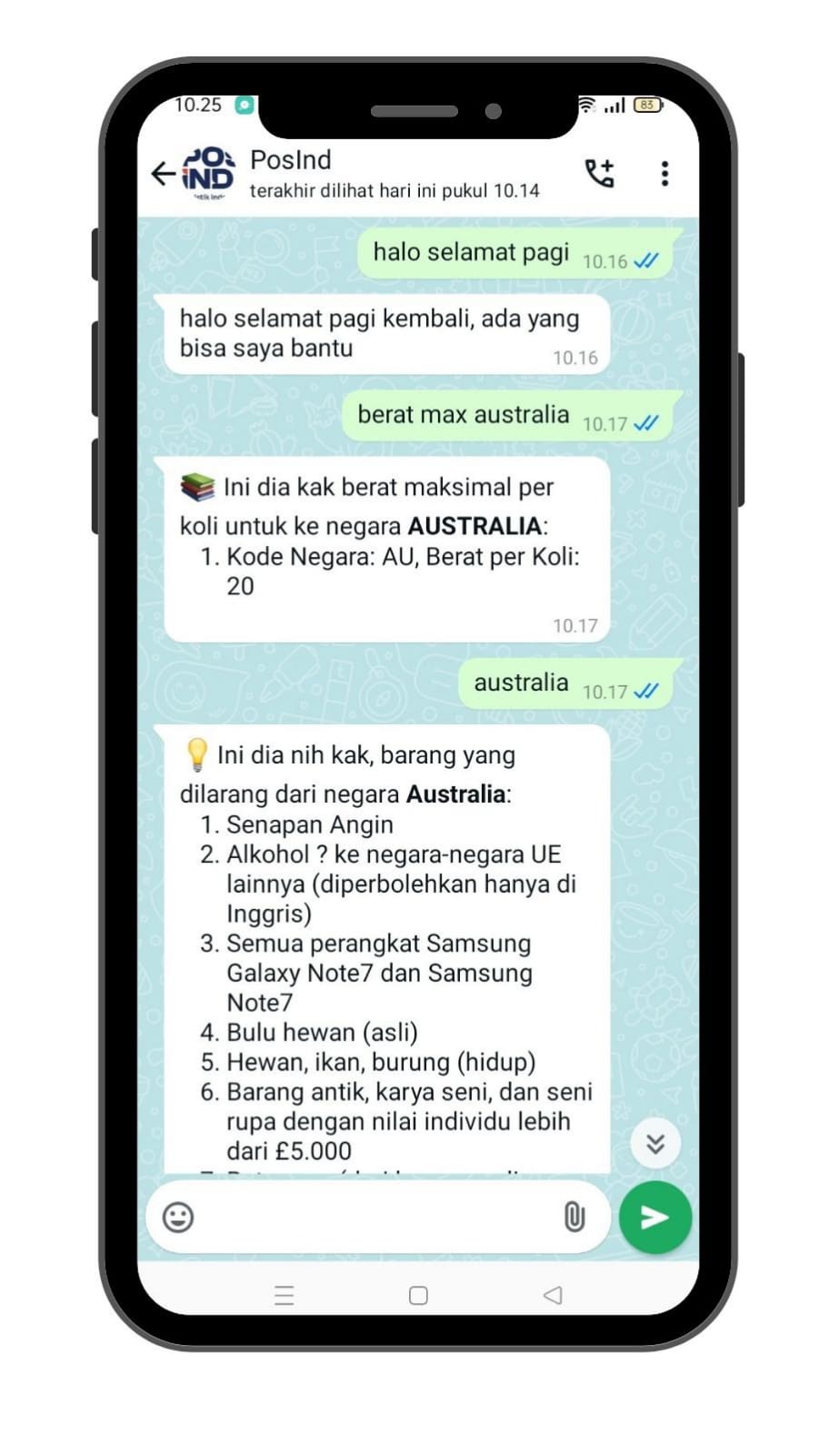 Chatbot kami siap kasih jawaban cepat dan tepat soal pengiriman barang ke luar negeri. Gak pake lama!